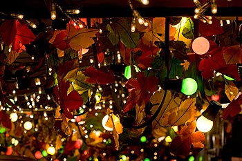 Feuilles multicolores au milieu de lampes teintées